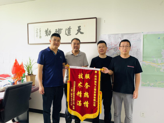 9月11日下午,杭州袋鼠餐飲管理有限公司總經理楊宏坤帶著錦旗“服務熱情,技術精湛”專程趕來,對工程公司項目四部的施工服務表示感謝,黨支部書記、總經理馮其棟代表公司感謝袋鼠餐飲對我們工作的支持和肯定。