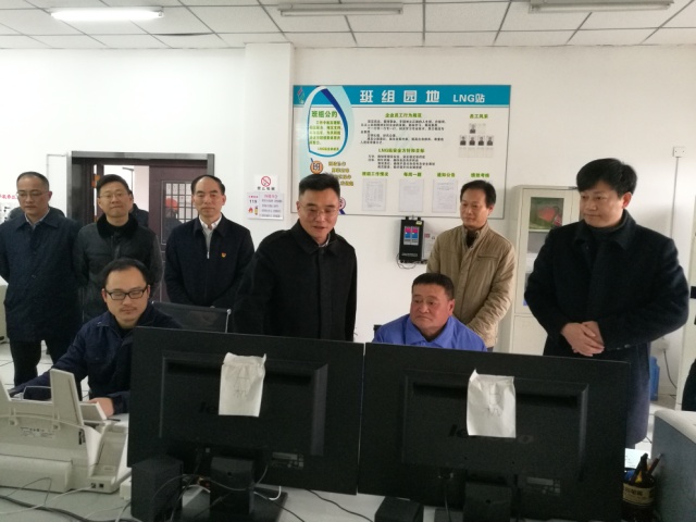 2月11日上午,縣委書記朱華、縣常務副縣長吳金富、副縣長余荊棘一行檢查桐廬杭燃江南LNG應急氣源站,公司領導俞紅偉、孫斌陪同檢查。