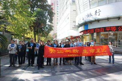 應急預案啟動、現場指揮部成立,疏散組成員騰騰從座位上彈起、微型消防站隊員蹈火逆行……抓住每分每秒,全心投入火速救援!20秒鐘完成戰斗服穿戴,60秒鐘到達“失火”現場,偵察火情、控制火勢、拉水帶、啟泵出水一氣呵成,13:14分,滅火組完成初期火災撲救。與此同時,十樓、九樓、八樓……大廈人員火速撤離。沒有通知、沒有征兆,警報就是命令,13:16分,85名干部員工爭分奪秒安全、有序撤離至停車場西大門指定疏散點。演練在大廈各部室大力支持和配合下取得圓滿成功!