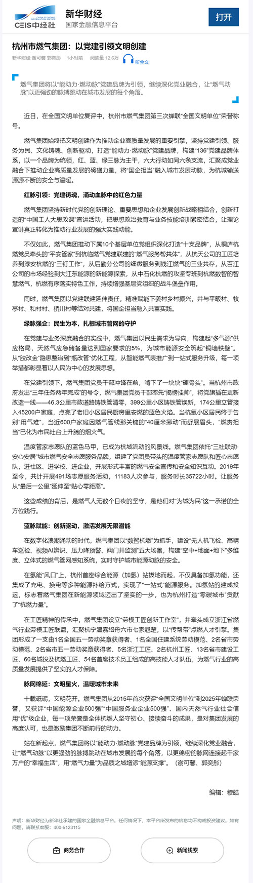 近日,在全國(guó)文明單位復(fù)評(píng)中,杭州市燃?xì)饧瘓F(tuán)第三次蟬聯(lián)“全國(guó)文明單位”榮譽(yù)稱號(hào)。