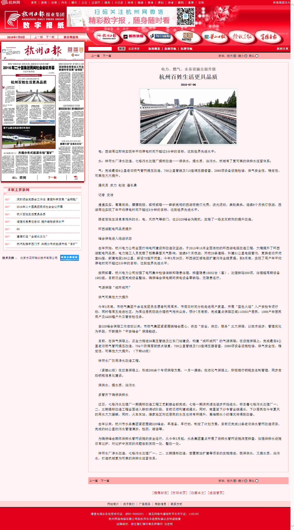 電力、燃氣、水務設施全面升級 杭州百姓生活更具品質