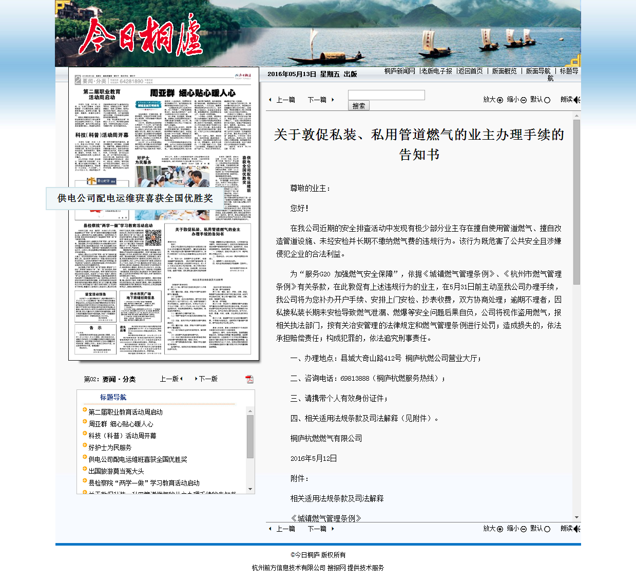 關(guān)于敦促私裝、私用管道燃?xì)獾臉I(yè)主辦理手續(xù)的告知書(shū)