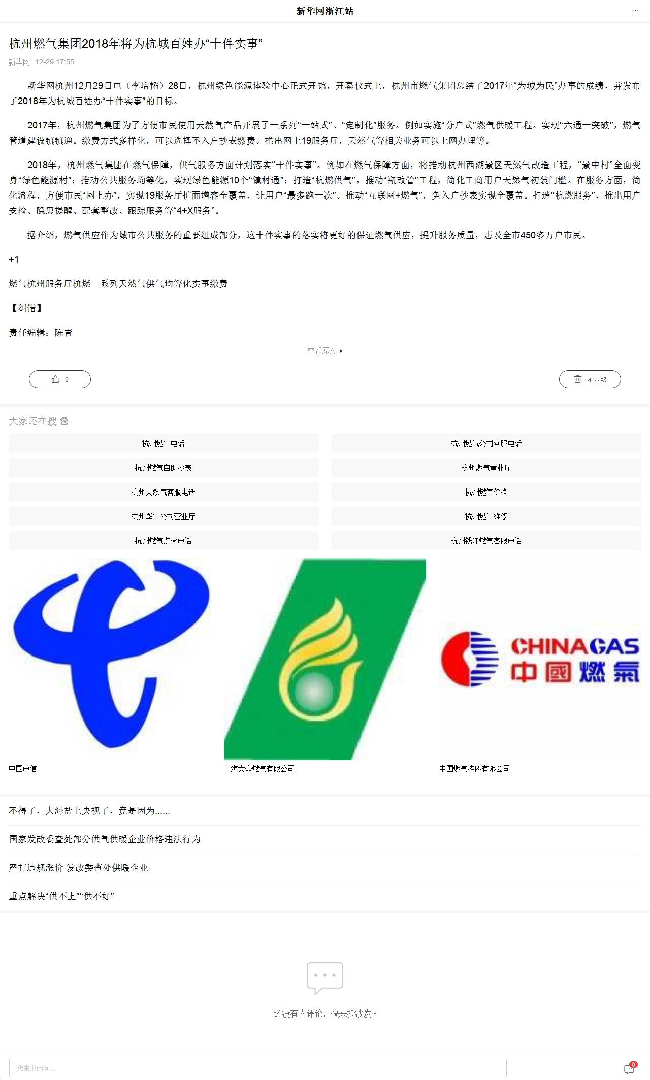 2018年,杭州燃氣集團在燃氣保障,供氣服務方面計劃落實“十件實事”。例如在燃氣保障方面,將推動杭州西湖景區(qū)天然氣改造工程,“景中村”全面變身“綠色能源村”;推動公共服務均等化,實現(xiàn)綠色能源10個“鎮(zhèn)村通”;打造“杭燃供氣”,推動“瓶改管”工程,簡化工商用戶天然氣初裝門檻。在服務方面,簡化流程,方便市民“網(wǎng)上辦”,實現(xiàn)19服務廳擴面增容全覆蓋,讓用戶“最多跑一次”。推動“互聯(lián)網(wǎng)+燃氣”,免入戶抄表實現(xiàn)全覆蓋。打造“杭燃服務”,推出用戶安檢、隱患提醒、配套整改、跟蹤服務等“4+X服務”。