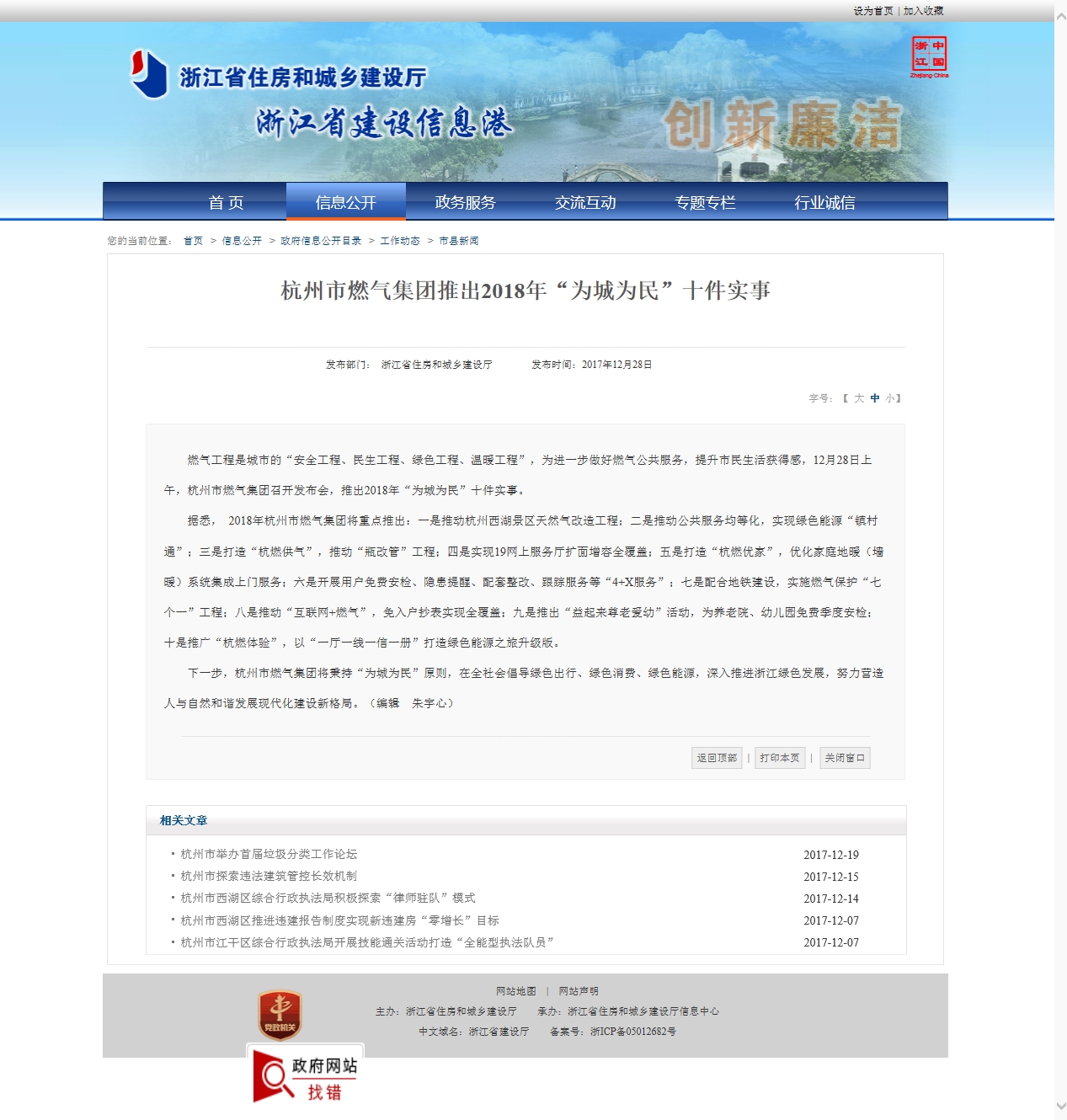 燃氣工程是城市的“安全工程、民生工程、綠色工程、溫暖工程”,為進一步做好燃氣公共服務,提升市民生活獲得感,12月28日上午,杭州市燃氣集團召開發布會,推出2018年“為城為民”十件實事。