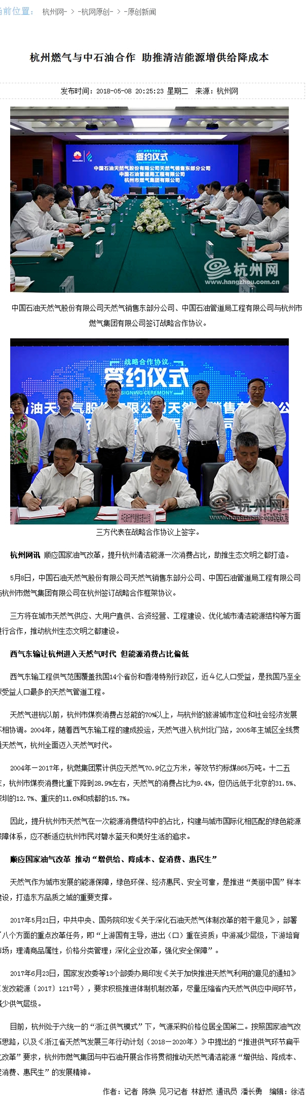 目前,杭州處于六統(tǒng)一的“浙江供氣模式”下,氣源采購(gòu)價(jià)格位居全國(guó)第二。按照國(guó)家油氣改革思路,以及《浙江省天然氣發(fā)展三年行動(dòng)計(jì)劃(2018—2020年)》中提出的“推進(jìn)供氣環(huán)節(jié)扁平化改革”要求,杭州市燃?xì)饧瘓F(tuán)與中石油開(kāi)展合作將貫徹推動(dòng)天然氣清潔能源“增供給、降成本、促消費(fèi)、惠民生”的發(fā)展精神。