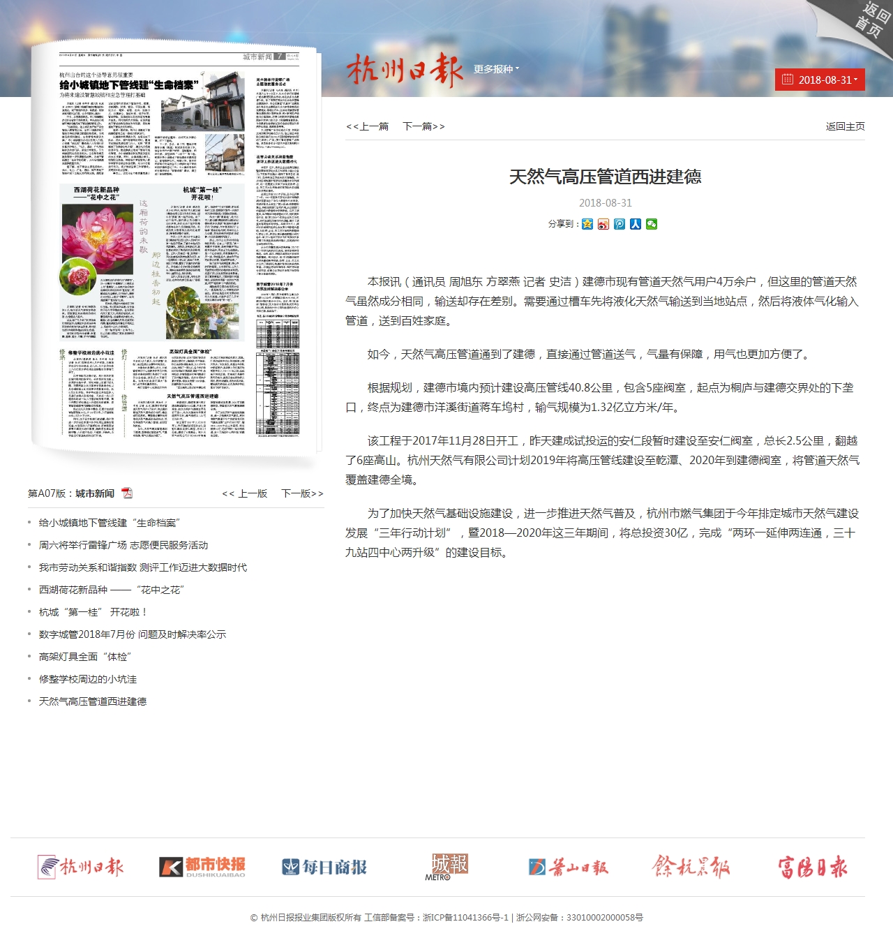 為了加快天然氣基礎設施建設,進一步推進天然氣普及,杭州市燃氣集團于今年排定城市天然氣建設發展“三年行動計劃”,暨2018—2020年這三年期間,將總投資30億,完成“兩環一延伸兩連通,三十九站四中心兩升級”的建設目標。