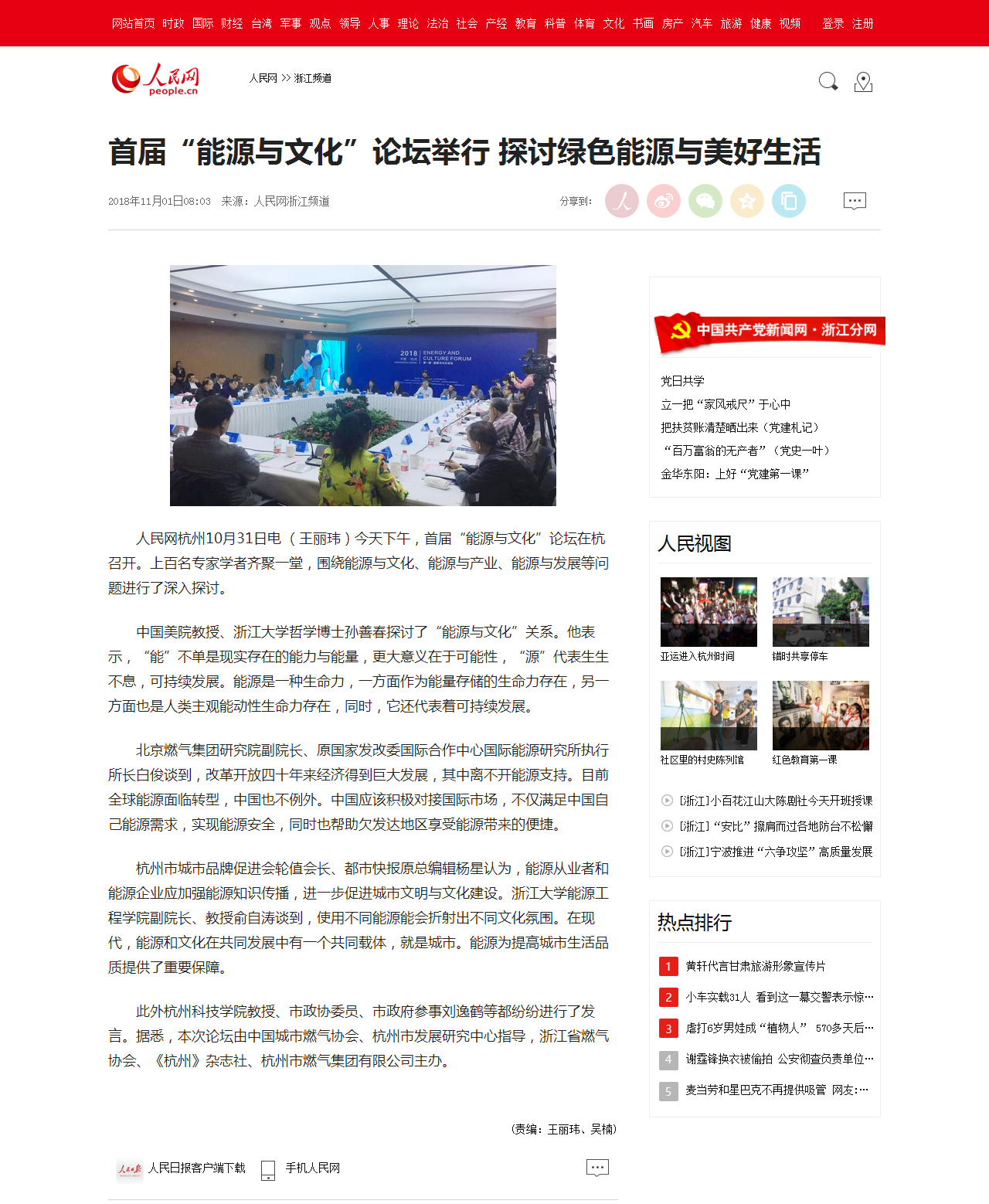 人民網(wǎng)杭州10月31日電 (王麗瑋)今天下午,首屆“能源與文化”論壇在杭召開。上百名專家學者齊聚一堂,圍繞能源與文化、能源與產(chǎn)業(yè)、能源與發(fā)展等問題進行了深入探討。