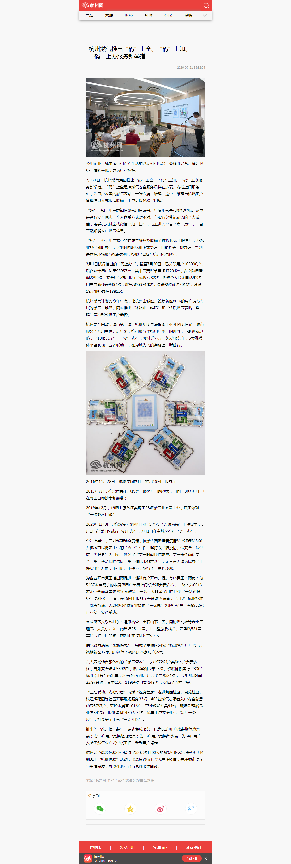 2020年1月9日,杭燃集團第四年向社會公布“為城為民”十件實事,3月1日在濱江區試行“碼上辦”,7月1日在主城區推行“碼上辦”。
