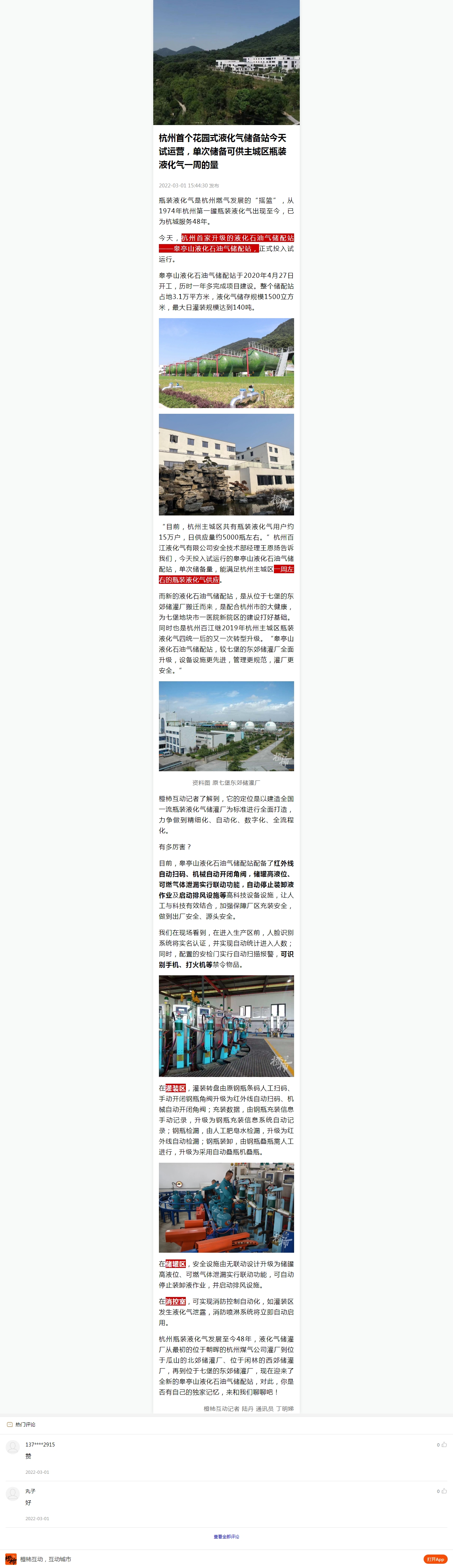今天,杭州首家升級的液化石油氣儲配站——皋亭山液化石油氣儲配站,正式投入試運行。