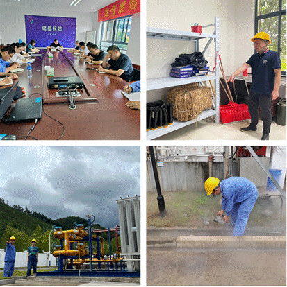 為保障天然氣管網安全平穩運行,根據往年防汛抗臺豐富經驗,公司領導班子分組帶隊進行安全檢查指導。場站班組對場站全面開展站場排水、排澇系統檢查,開展配電房、室外配電箱等重要設備隱患排查等各項工作,確保人員24小時待命,保證一旦發生突發事件能迅速配合開展應急搶險。在集團公司和城市能源公司的大力支持下,公司各場站LNG槽車次日到站的計劃均提前一天到場待命卸液。巡檢搶修加力度,巡檢班員工對山峰村過劉家溪橋管、溪邊路過壽昌江橋管、梅城鎮嚴州大橋橋管等多處河道橋管以及山體進行巡查,排查統計重點部位和有歷史遺留問題部位,把存在的隱患問題消除臺風來臨之前,同時,對戶外燃氣設施進行汛前安全巡檢,重點檢查各個調壓器的運行情況及調壓器周邊樹木情況,防止臺風吹倒樹木損壞調壓器。