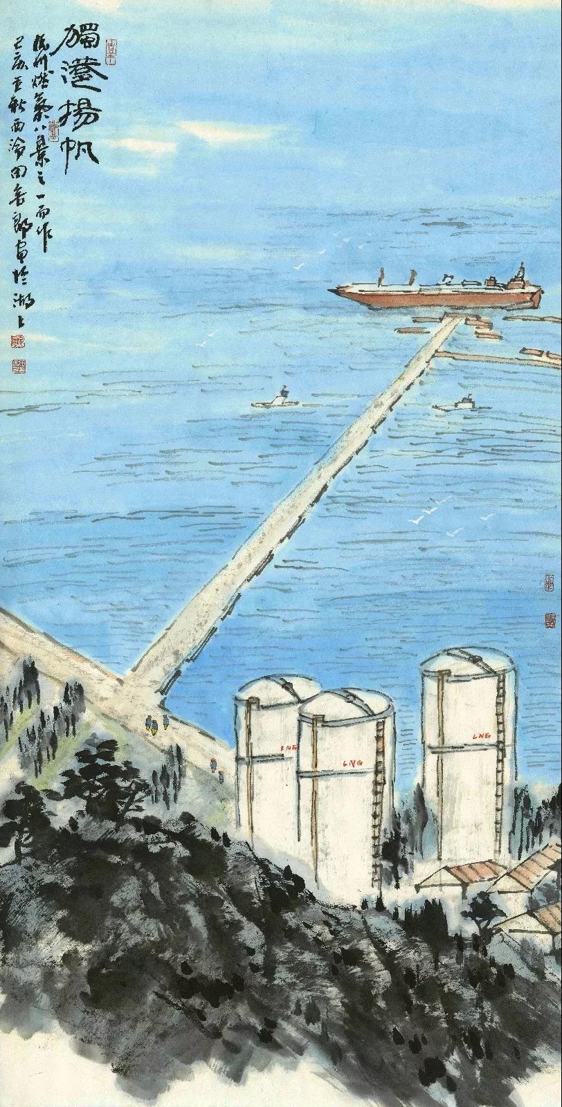 組成元素:船舶、海、港口、LNG罐體、建筑物等。