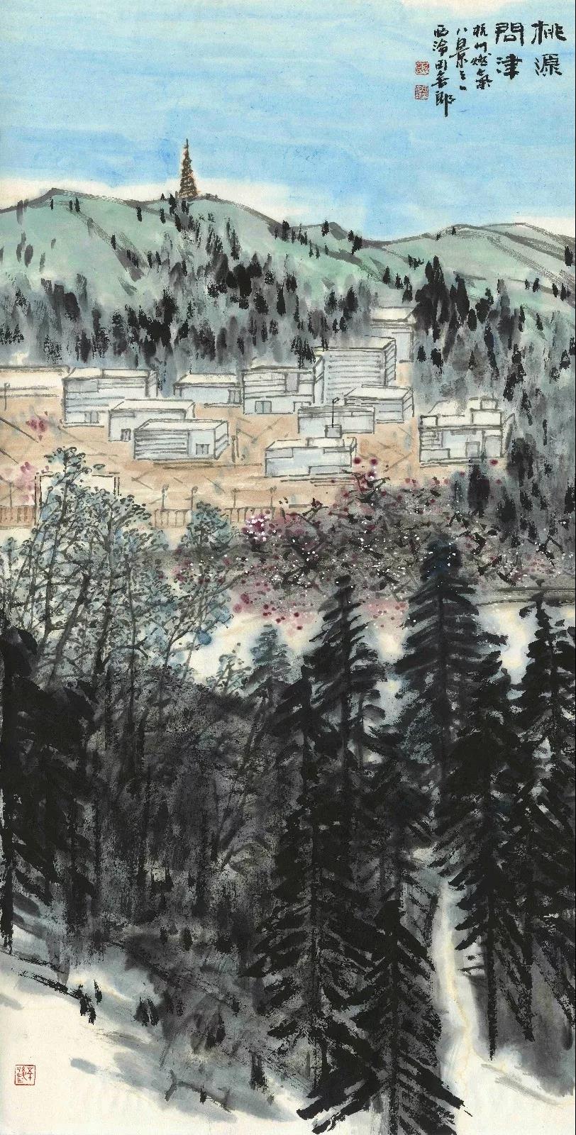此景桃源,指皋亭山桃花源;問津,指問尋途徑,進行能源研發(安全工程、民生工程、綠色工程、溫暖工程)的途徑。指皋亭山瓶裝液化石油氣儲配站和研發中心,液化石油氣儲存規模為1500立方米,設置7臺200m³和1臺100m³臥式儲罐,最大灌裝規模140噸/天,通過能源的研究應用,為杭州城市國際化提供綠色動力。